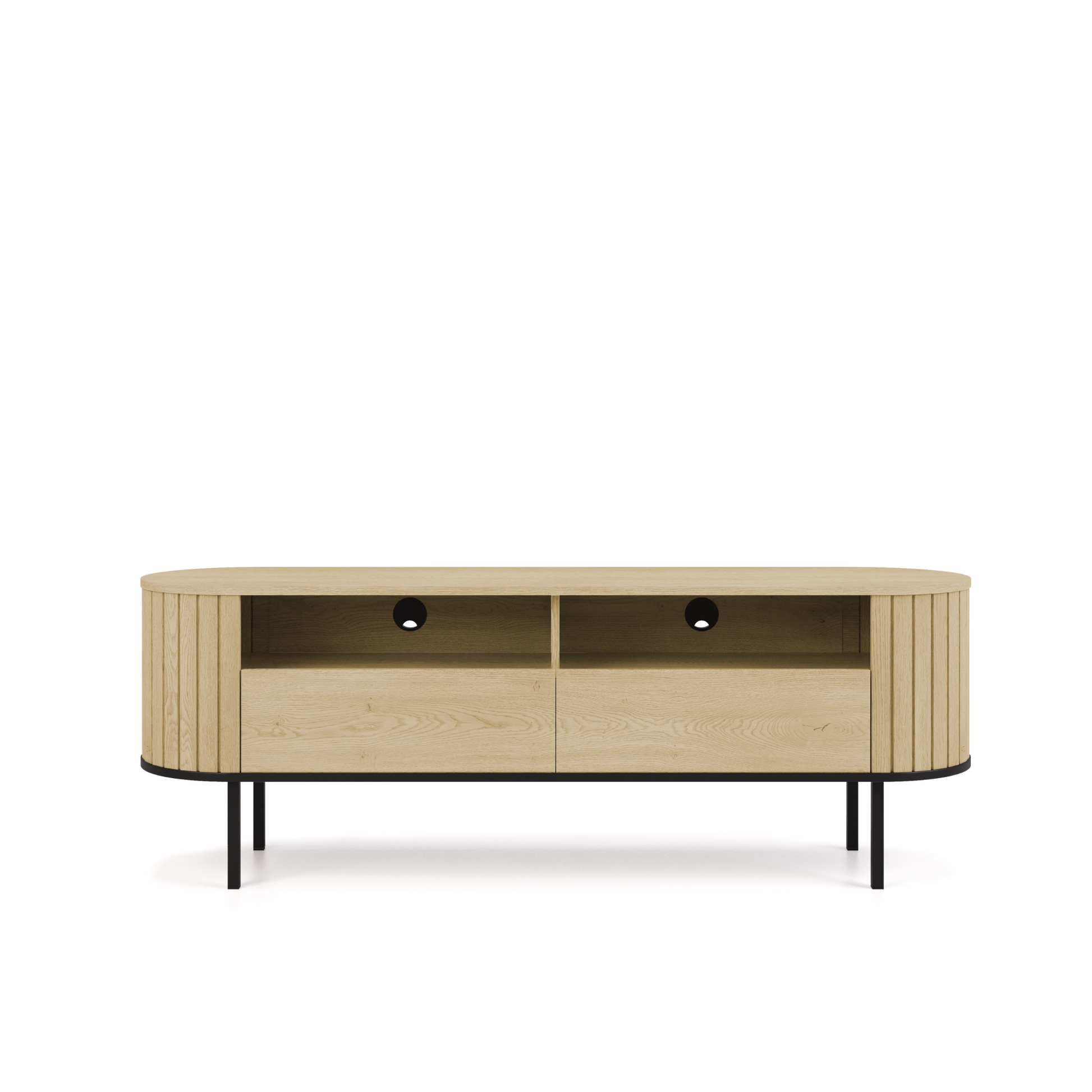 The Mito cabinet is the epitome of modern design that will fit perfectly into minimalist and modern interiors. Made of durable laminated board, it provides an elegant and clean look. The cabinet has four practical sections: two cabinets with doors and an open space, ideal for a decoder or player. Thanks to its solid construction and black painted metal legs, the cabinet is stable and aesthetically complements any interior.