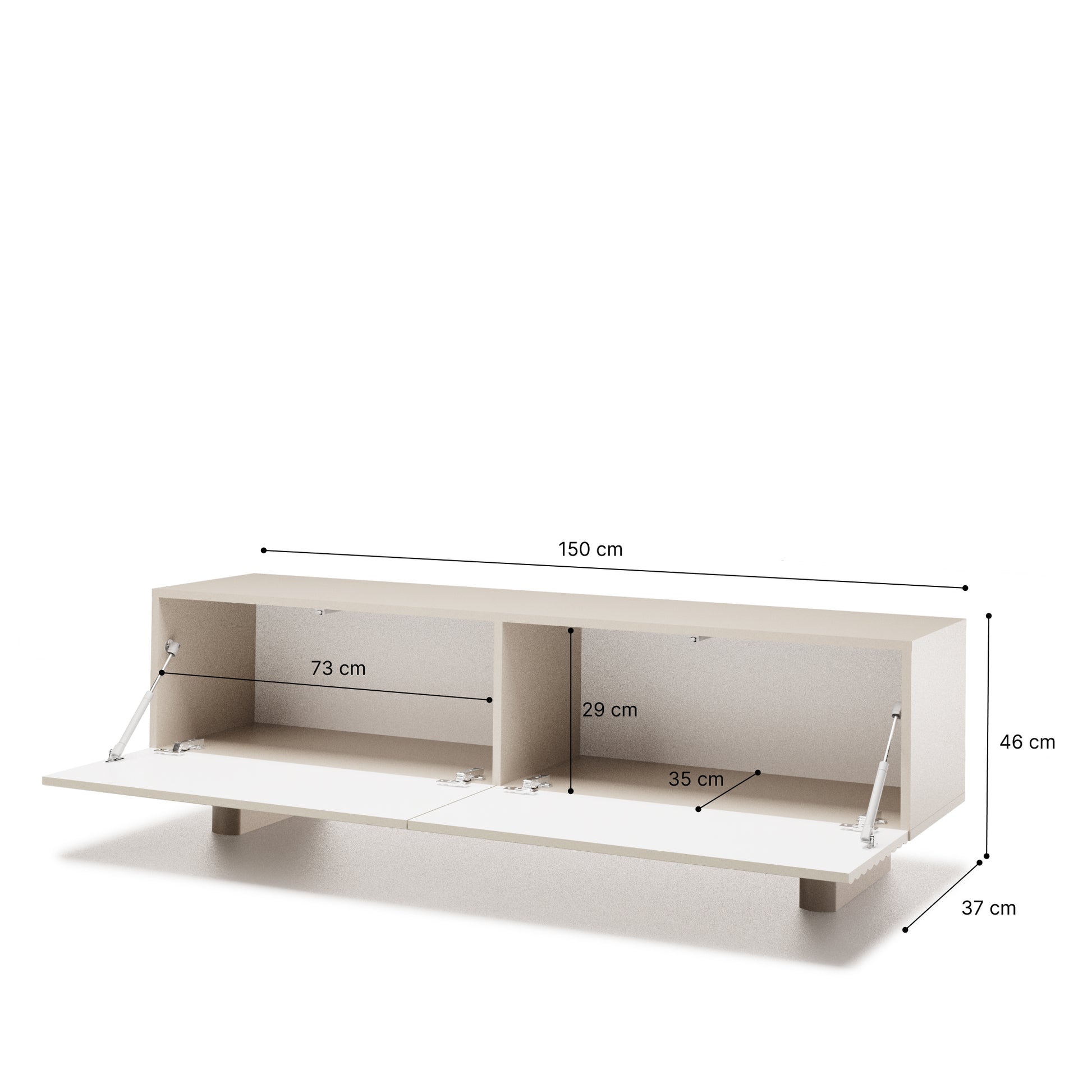 The Toyo TV cabinet measures 150 cm wide, making it an ideal solution for a variety of spaces.