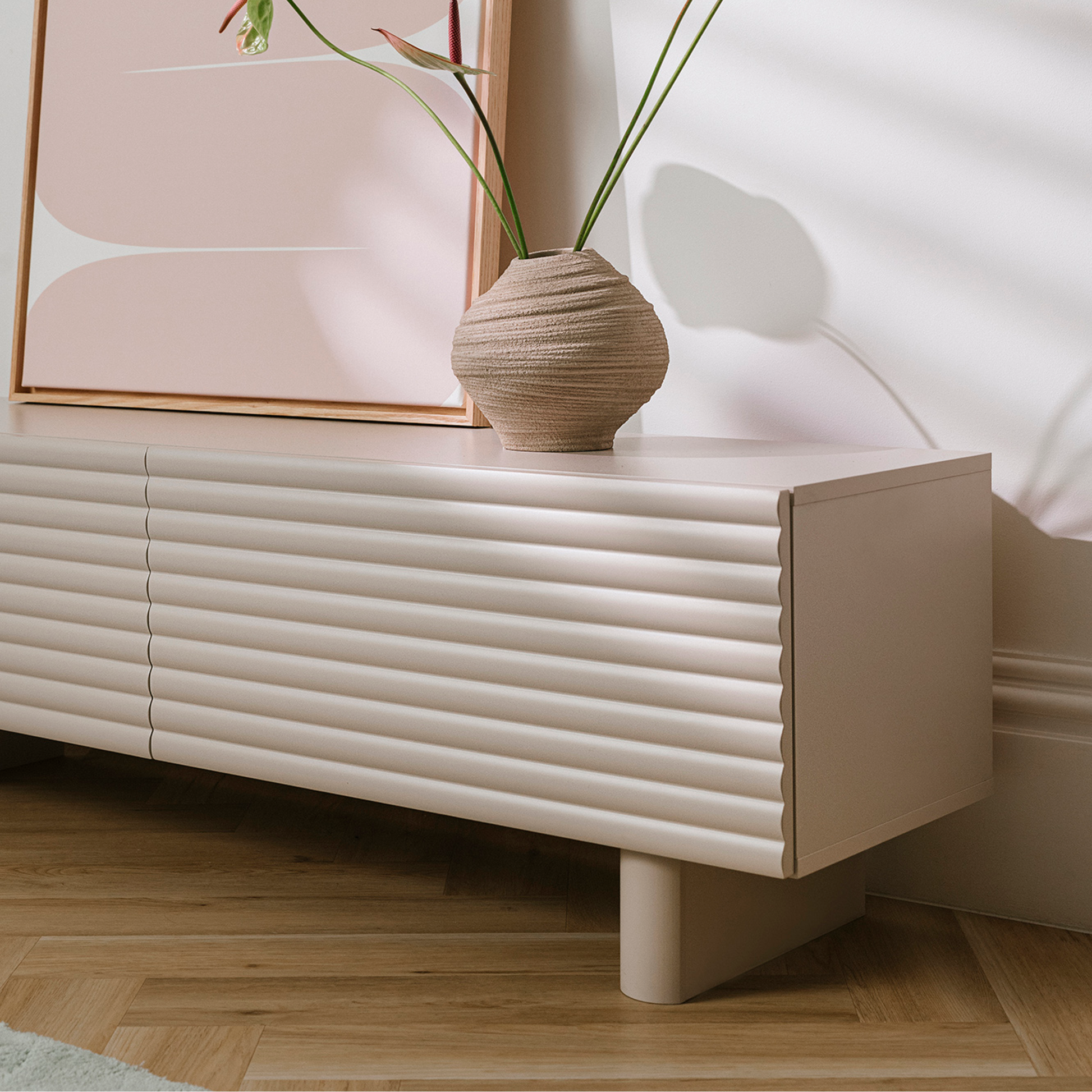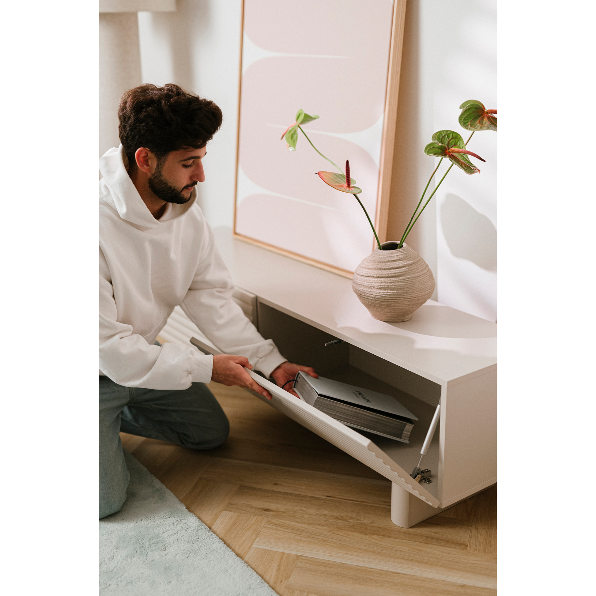 Milled fronts made of 18 mm thick MDF board give Toyo a unique character and modern look. Precise milling creates unique patterns that are a stylish accent in any room.