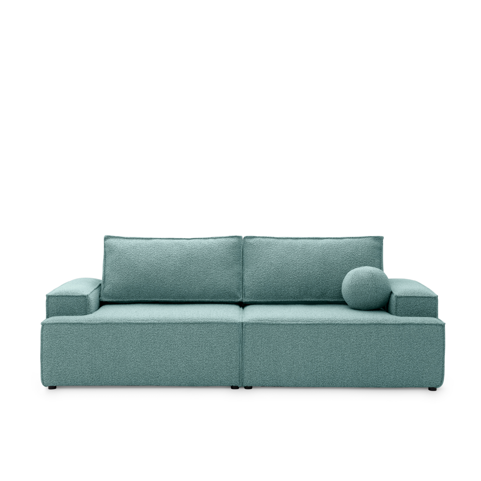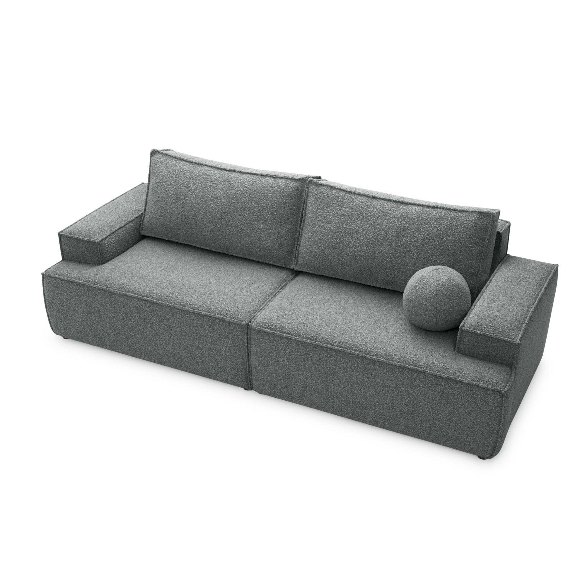 Sofa w tkaninie boucla z pojemnikiem i funkcją spania