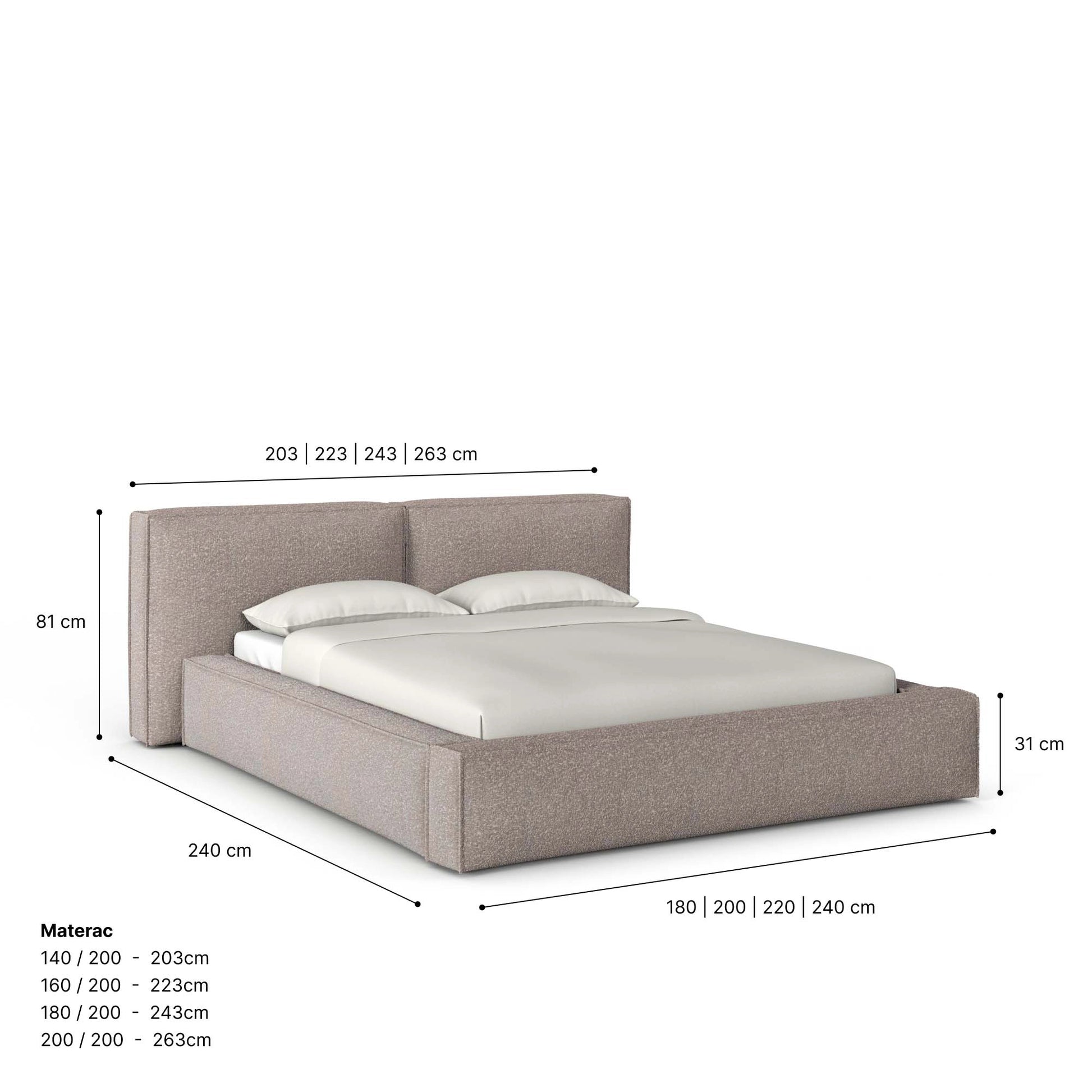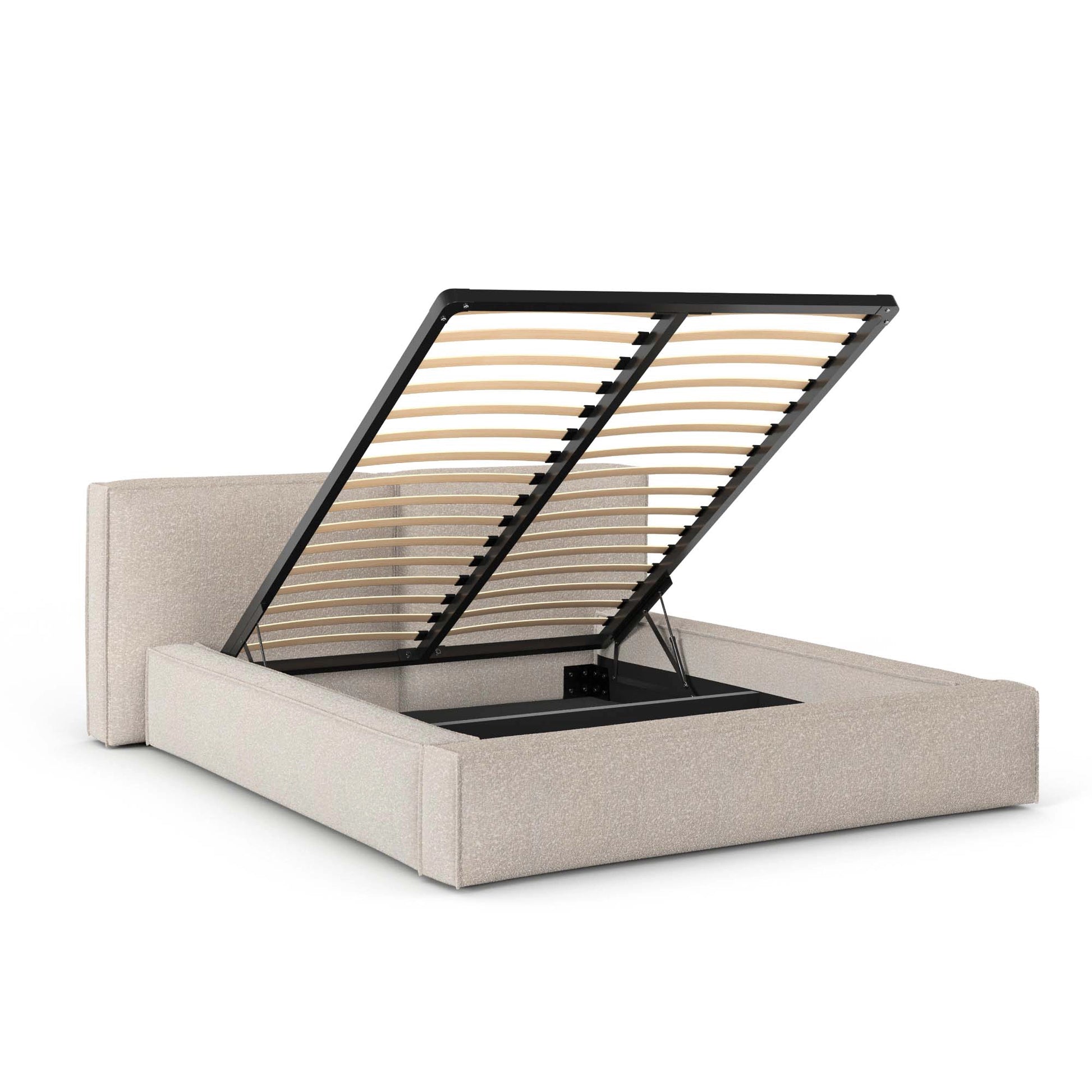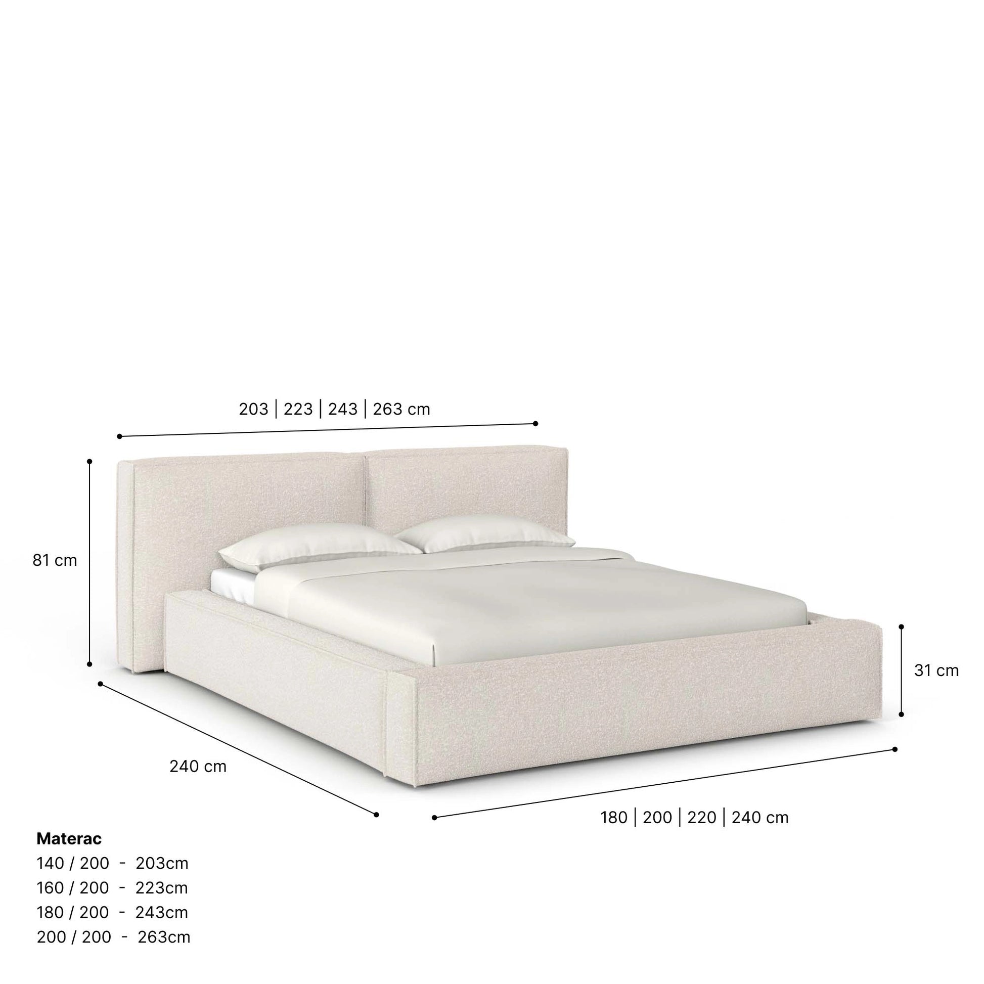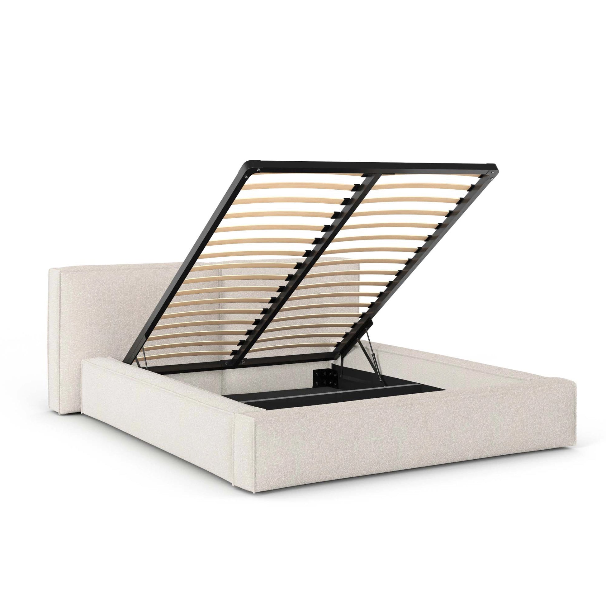 Łóżko tapicerowane ze stelażem i pojemnikiem - tkanina boucle