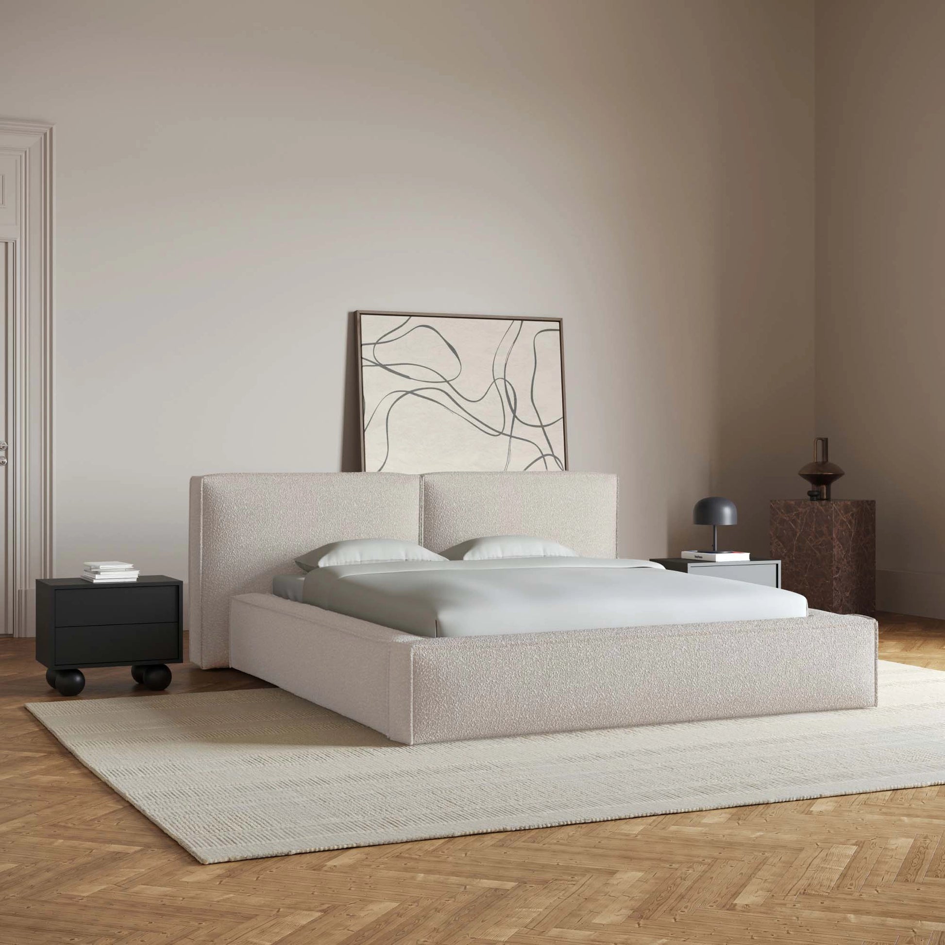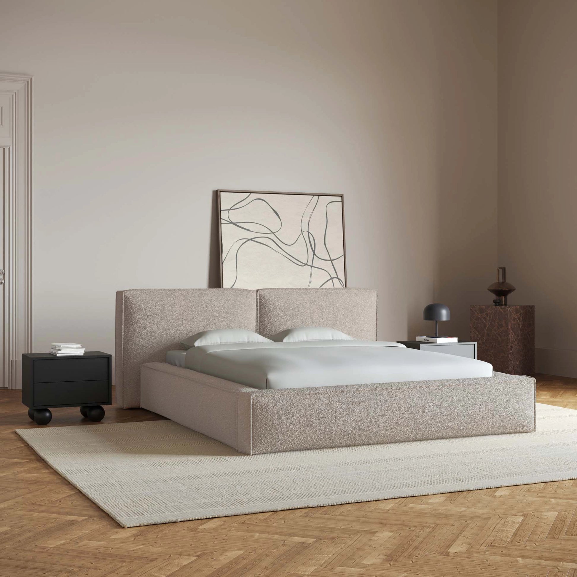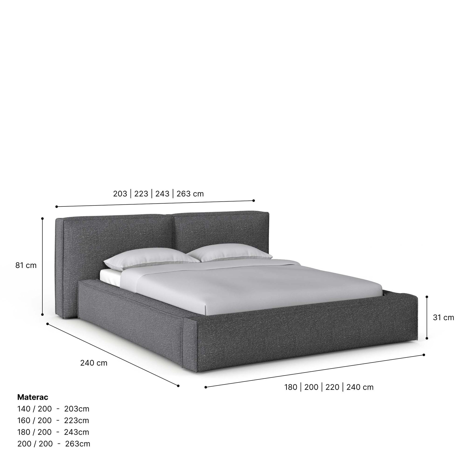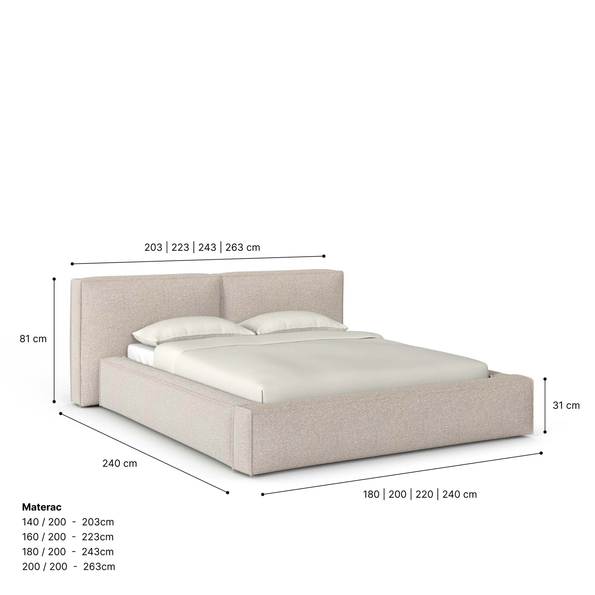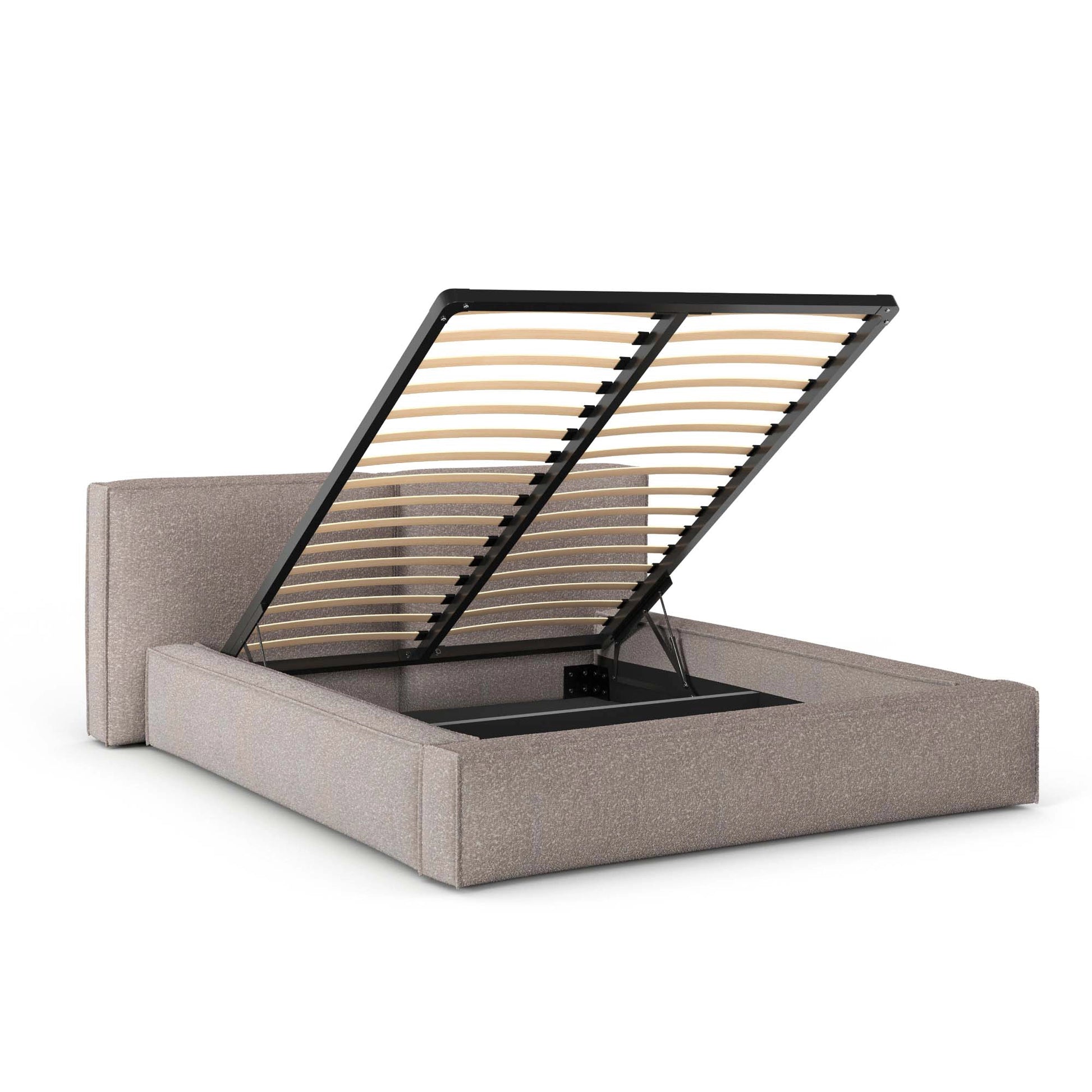 Łóżko tapicerowane ze stelażem i pojemnikiem - tkanina boucle