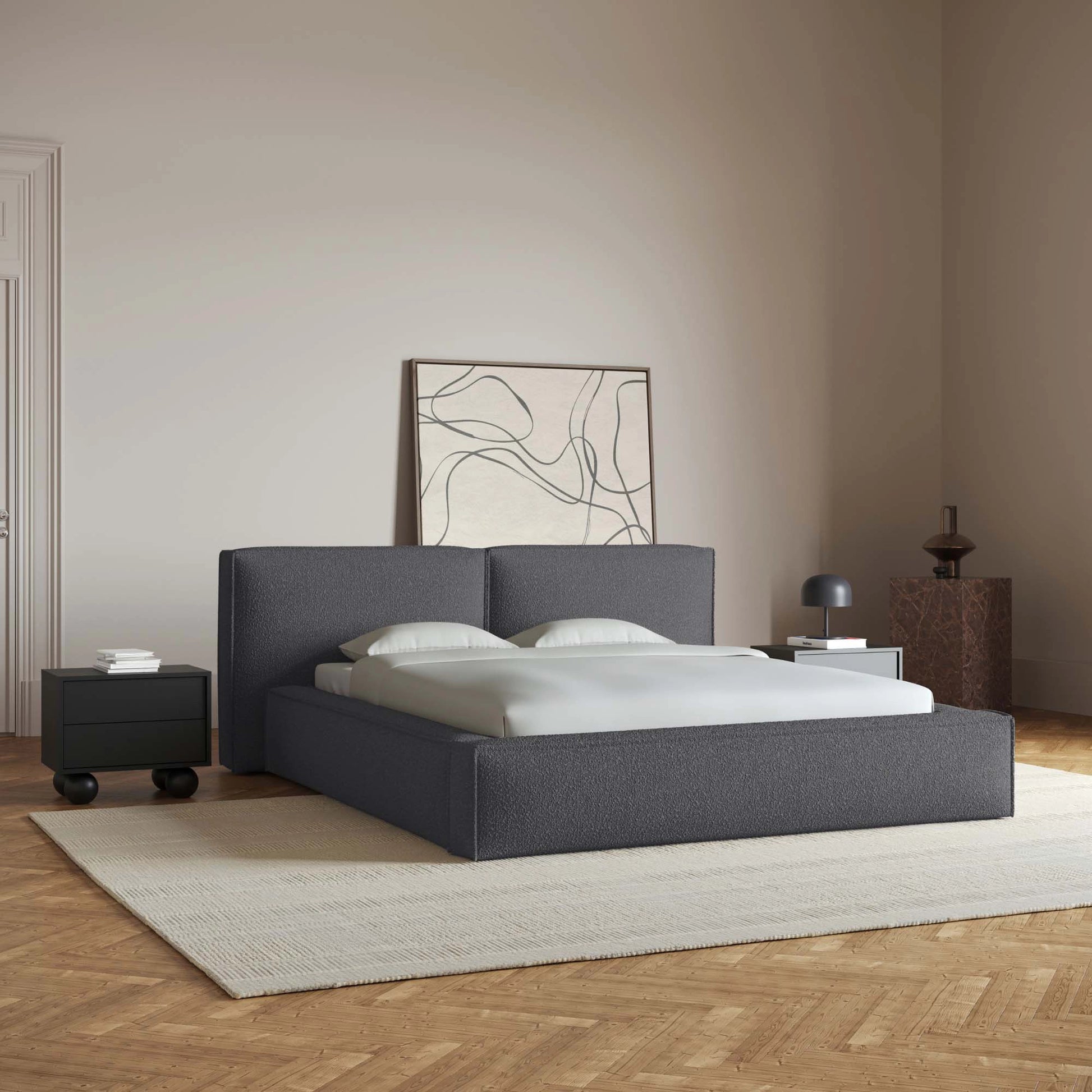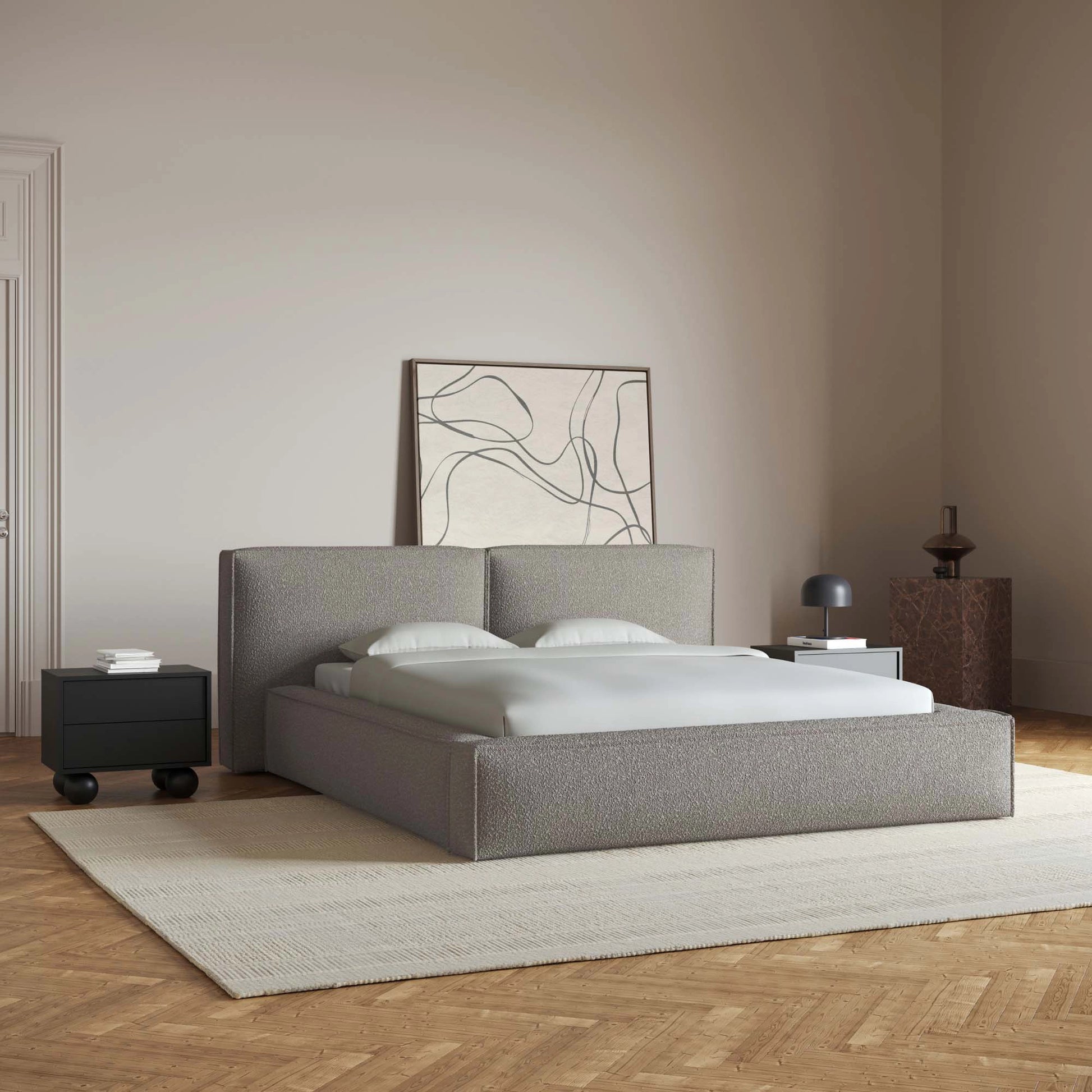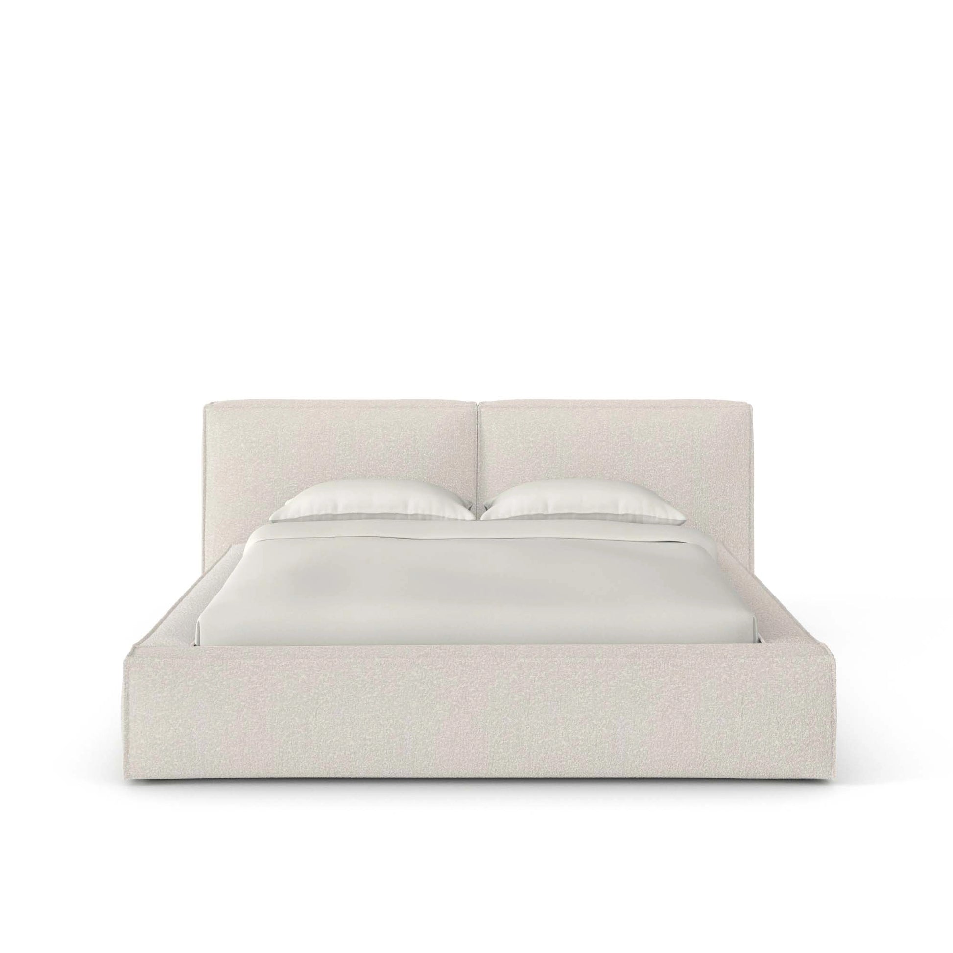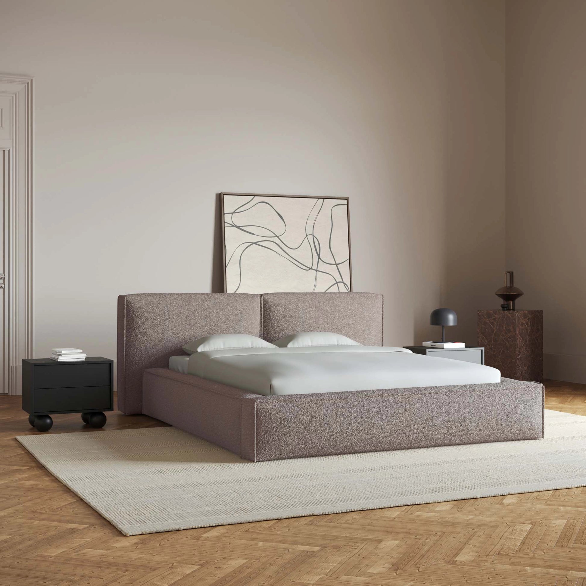 Łóżko tapicerowane ze stelażem i pojemnikiem - tkanina boucle