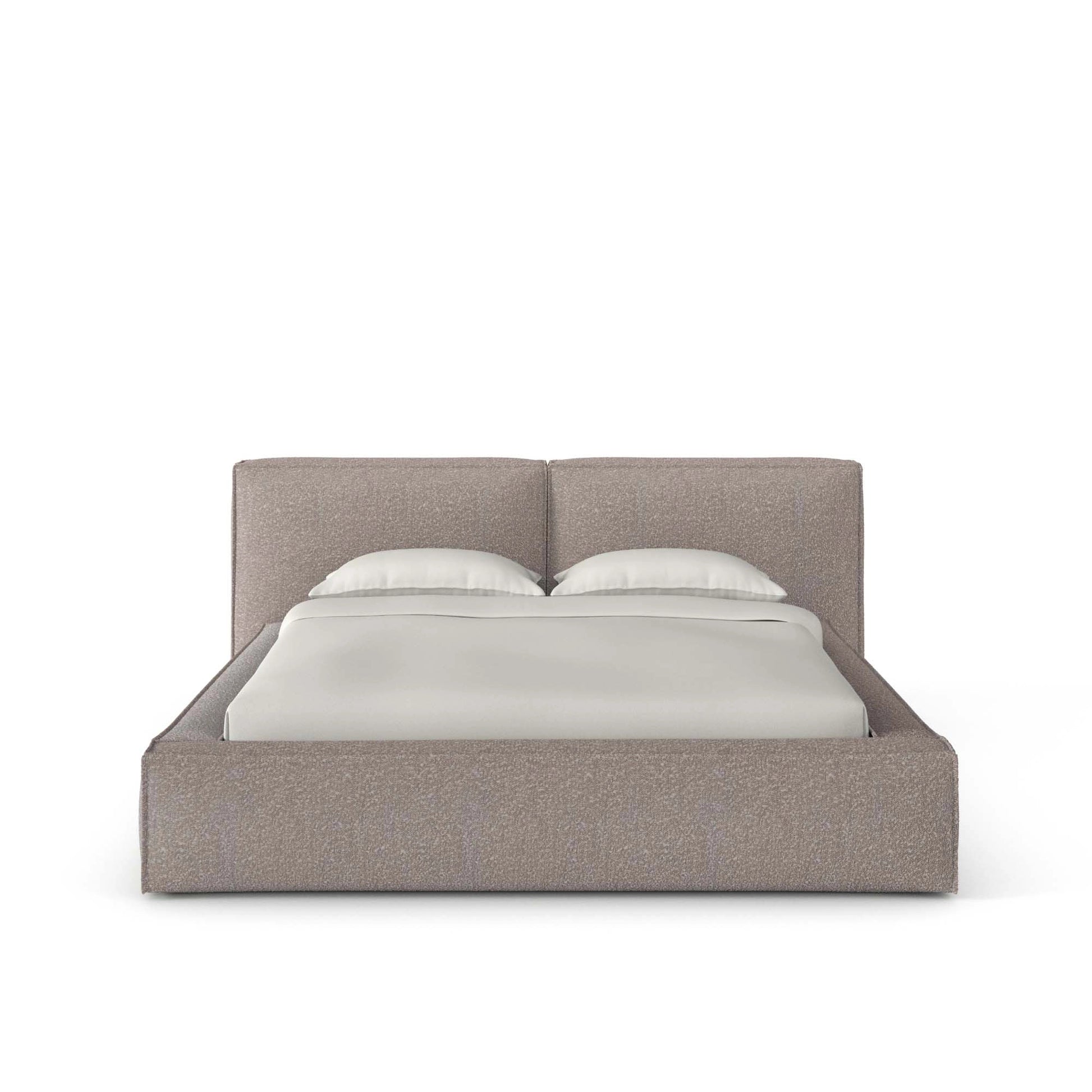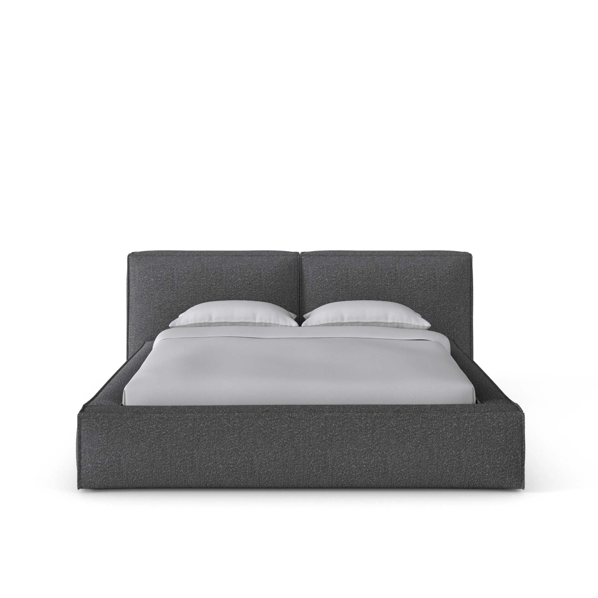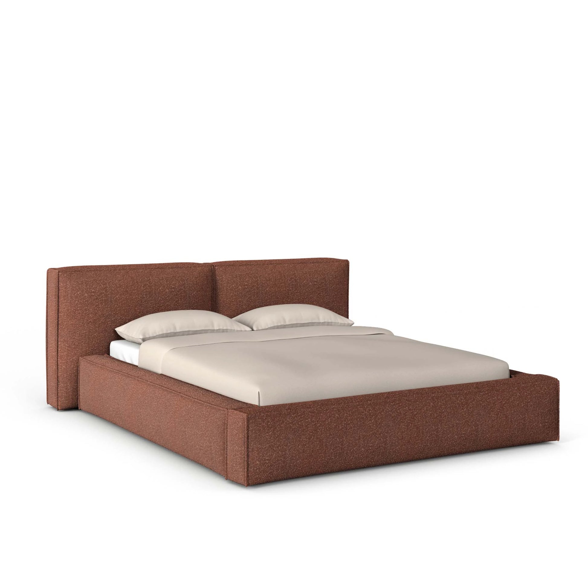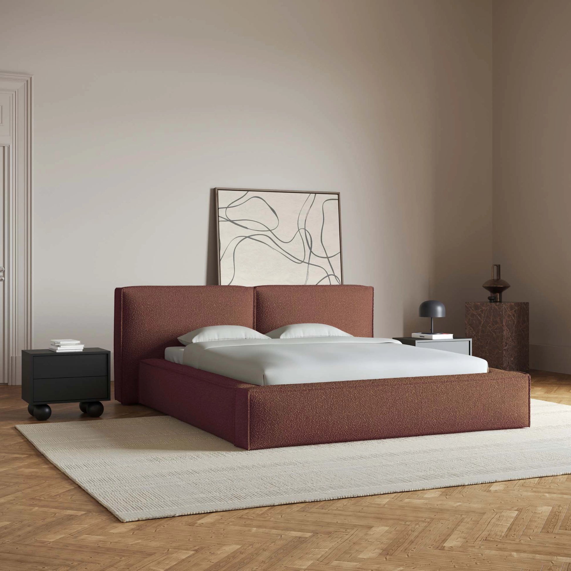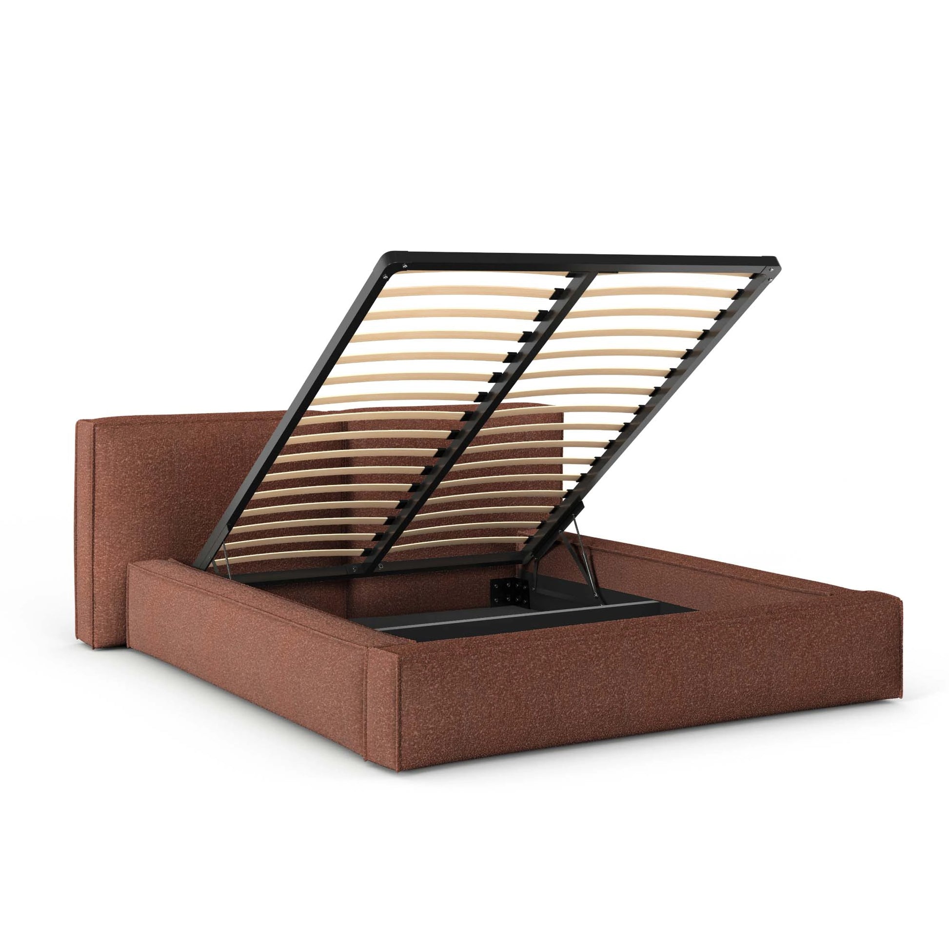Łóżko tapicerowane ze stelażem i pojemnikiem - tkanina boucle