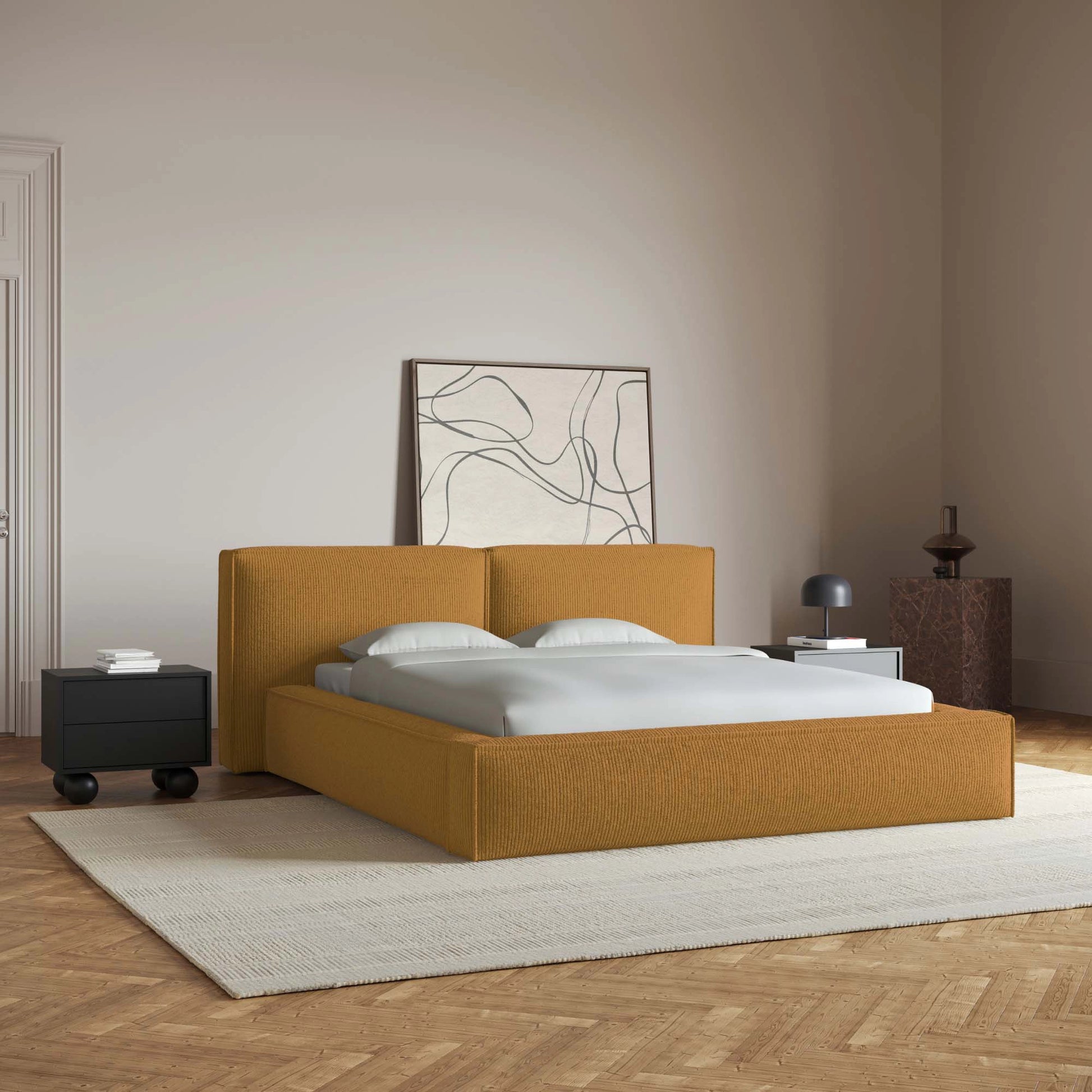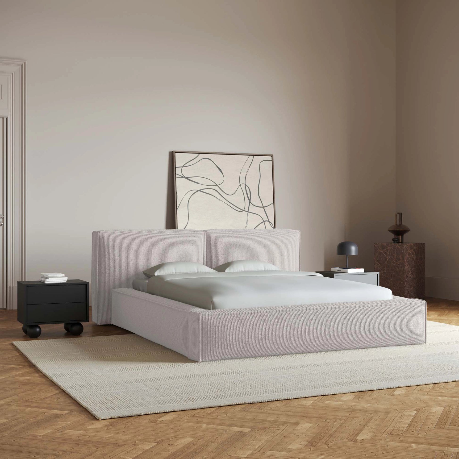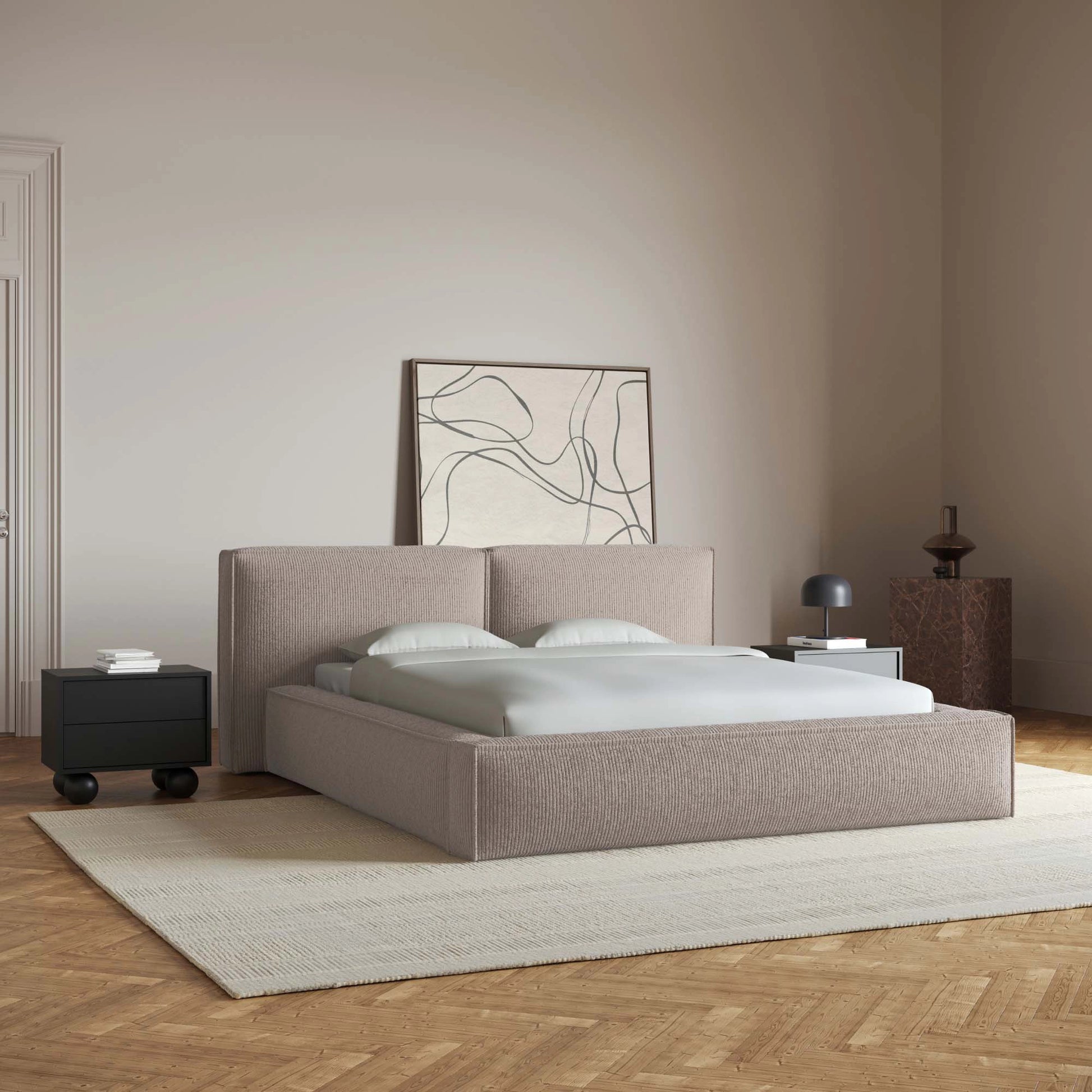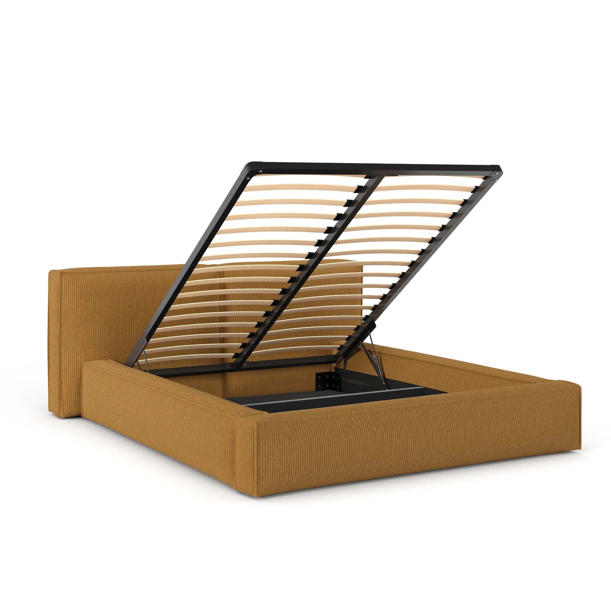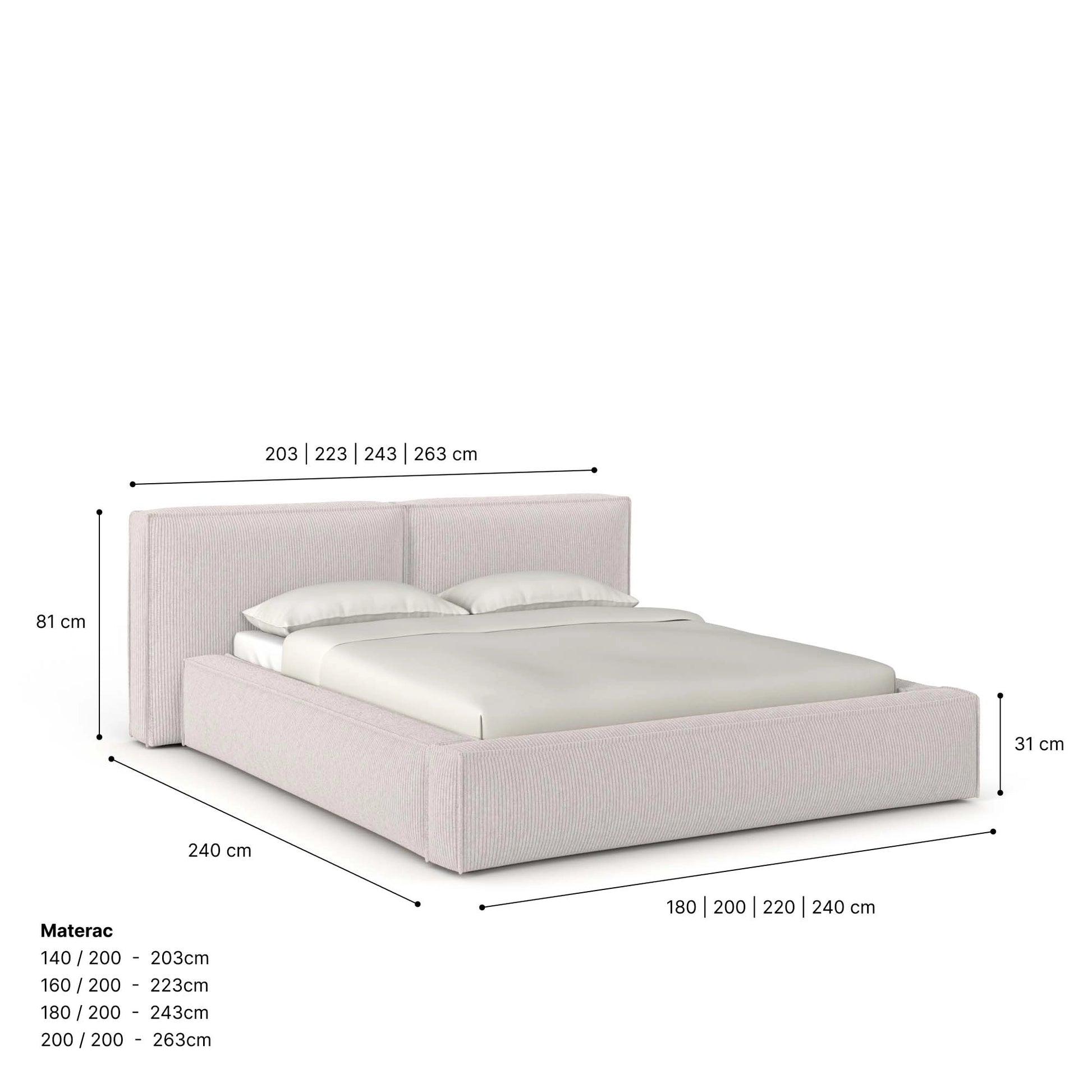 Łóżko tapicerowane ze stelażem i pojemnikiem - tkanina easy clean
