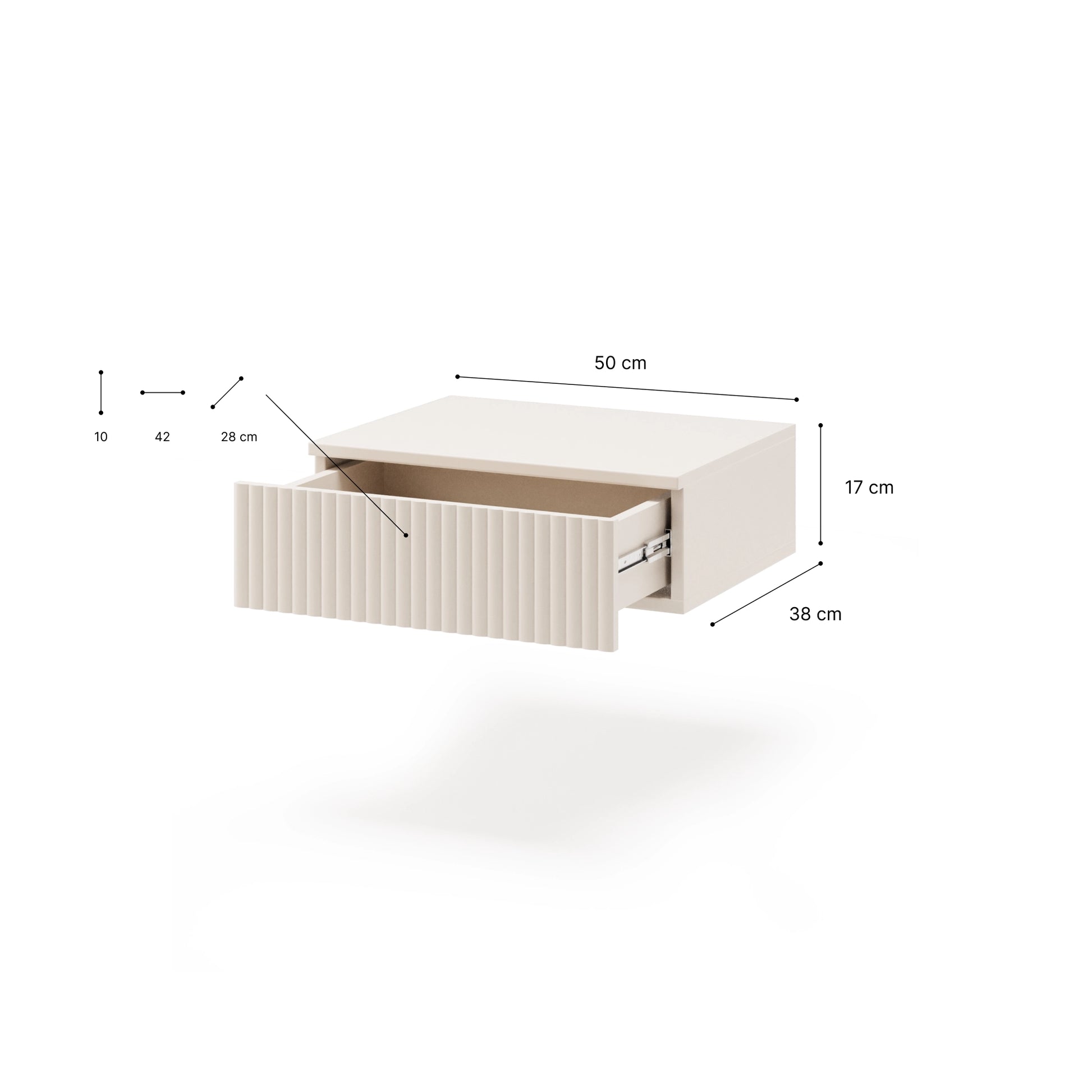 podwieszany stolik z ryflowanymi frontami w kolorze kaszmir